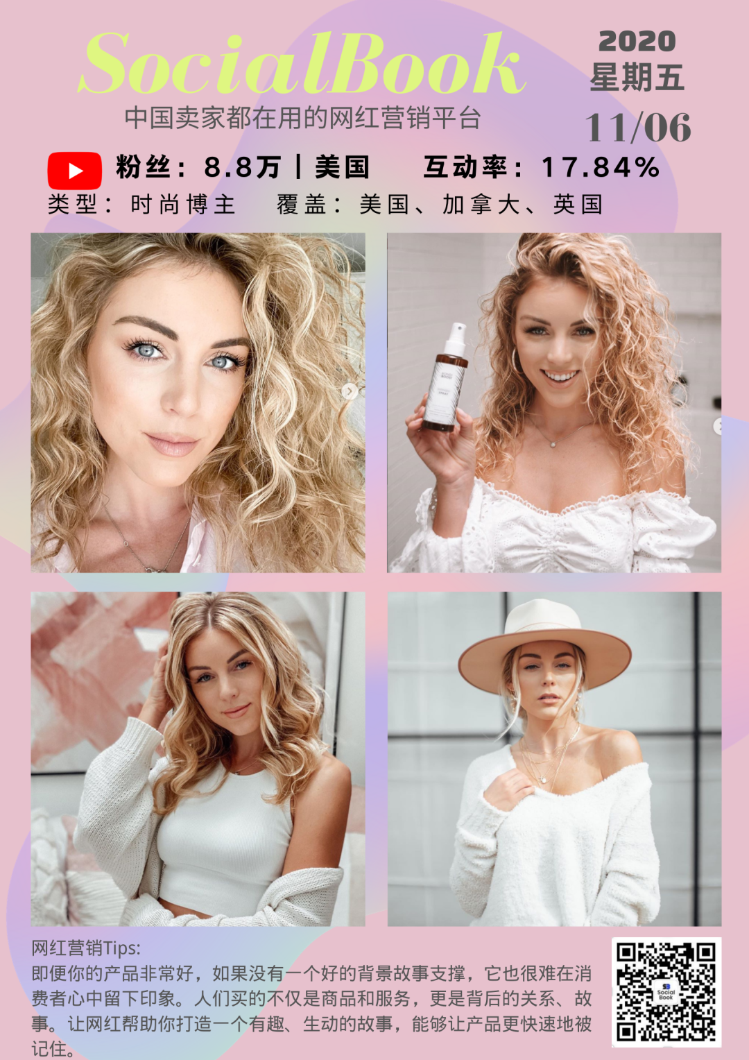 SocialBook位于美国旧金山,成立于 2014 年。通过人工智能,大数据和区块链技术搭建的实时海外网红合作平台及数据库,覆盖 YouTube 及 Instagram 全球300多万网红资源。提供标签搜索,网红画像,群发联系,线上支付、投放监测,竞品分析等服务。已成功合作华为、出门问问、小米手环、猎豹、美图等多个知名出海品牌。