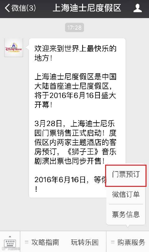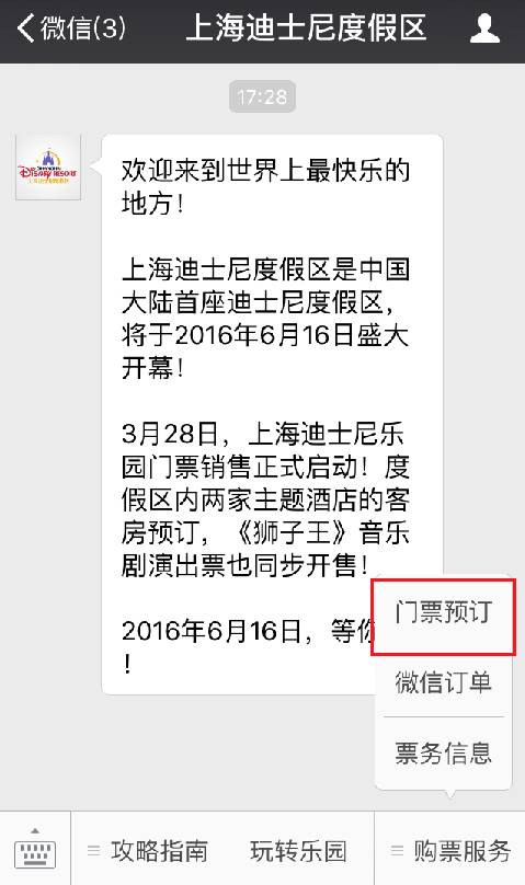 上海迪士尼乐园门票于2016年3月28日(周一)凌晨零点零一分正式开售。