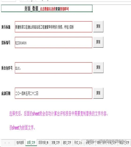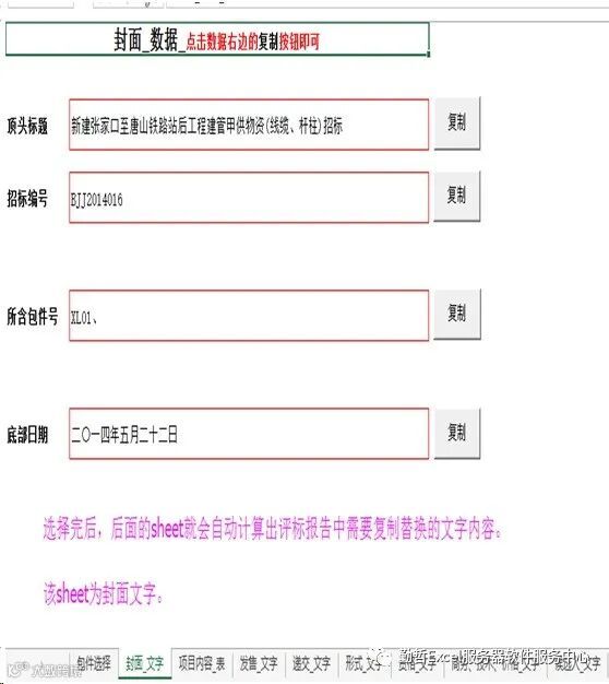 以下sheet的内容与评标报告复制替换方法如上,在此不再累述。