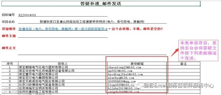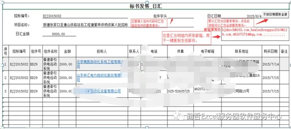 用于汇总当日标书发售情况,并复制邮箱集合,发送标书文件电子版。
