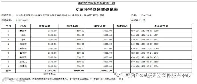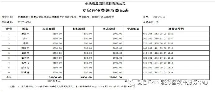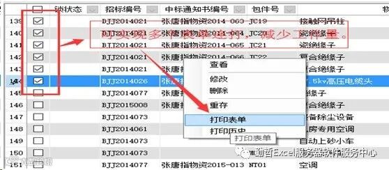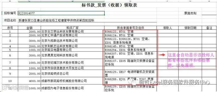 用于快速制作和打印开标现场时使用的《发票领取表》