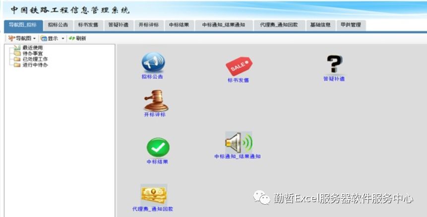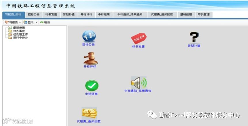 不难看出,勤哲Excel服务器软件基本囊括了从招标公告发布到答疑补遗到招标文件发售到开评标现场到中标情况的汇总和到中标通知书结果通知书的自动生成等各个业务流程相关的大部分功能模块。勤哲Excel服务器软件可做到只要前面单据录入过的数据,后面的单据全部选填,减少了很大工作的强度并提高了效率和准确性;所有统计报表和规律性表单全自动化生成,免去人工操作的繁琐。最重要的是,勤哲Excel服务器软件可随业务的增加和改变随时增加和调整各功能模块,以适应和提高数据管理的高效性和准确性。