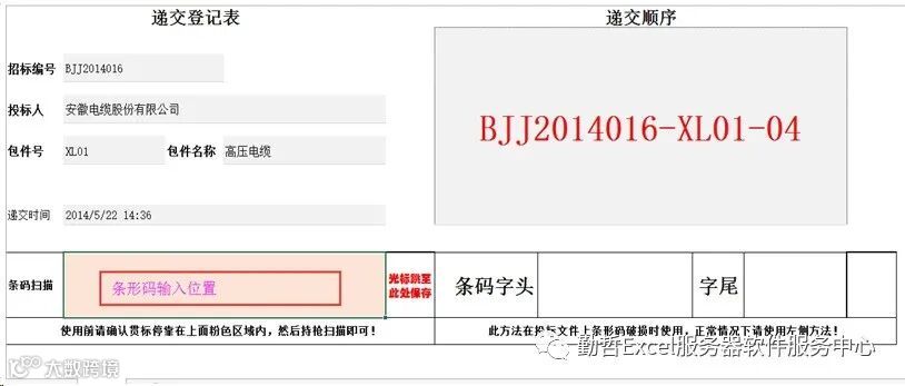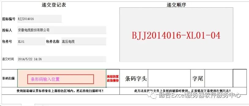用于开标现场收取投标文件时快速登记(已实现扫码枪快速扫描条形码自动录入系统)