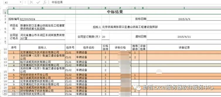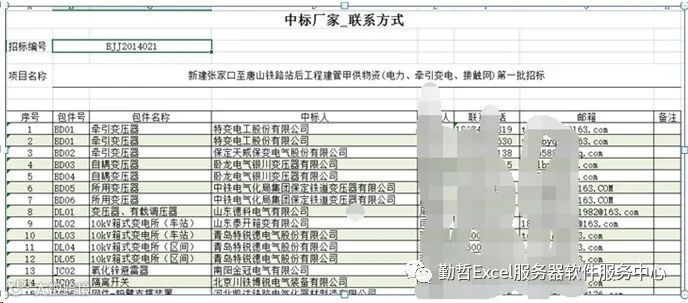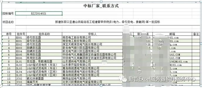 用于自动汇总中标厂家的联系人联系方式,为后期工作做准备。