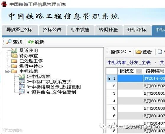 该系统是通过中铁物总国际招标有限公司招开标工作的参与,了解相关的业务流程而开发设计,并经过了张唐铁路招投标工作的实际应用。