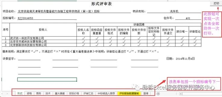 用于进入评标室的专家快速打印评标附表。(本表单是保存《开标_记录表》后系统自动生成的)