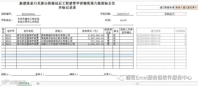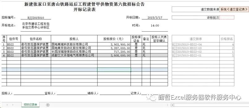 用于投标文件扫码递交完成后自动按倒序汇总递交记录,以备唱标时做记录使用。