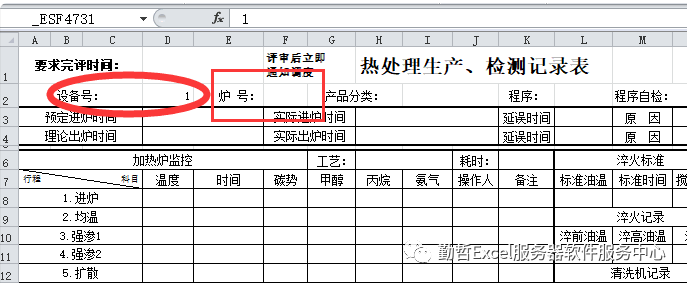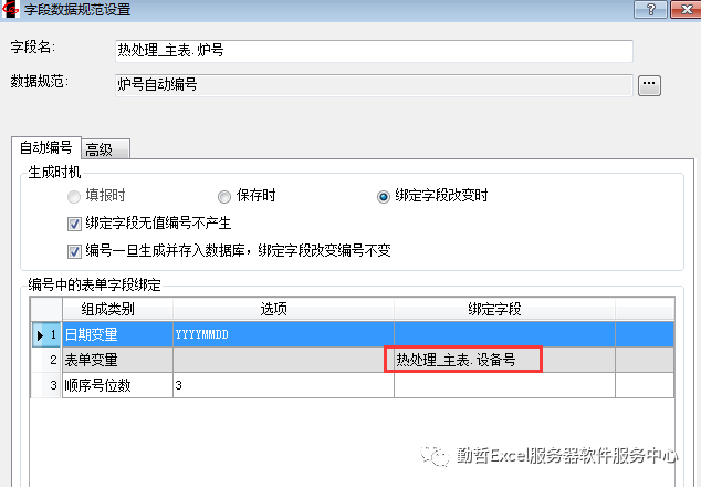 勤哲Excel服务器软件服务中心场景:在勤哲Excel服务器软件的使用过程中,如何把表单的内容也加进去,比如我有两个炉子,设备号分别是1和2,在表单上有显示,如何把1或者2也加入到编号里?如下图: