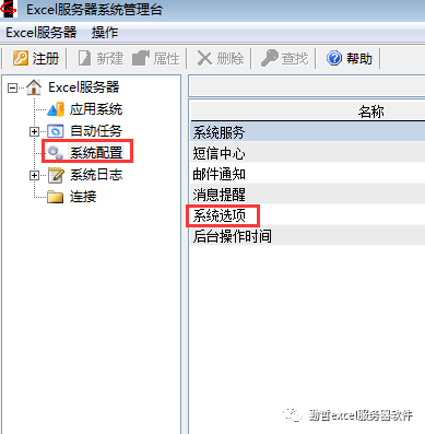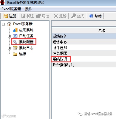 首先,登录Excel服务器系统管理台,找到系统配置-系统选项