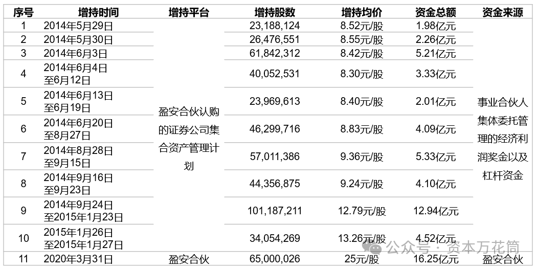 注:万科事业合伙人增持股票情况,资料来源:万科公司公告