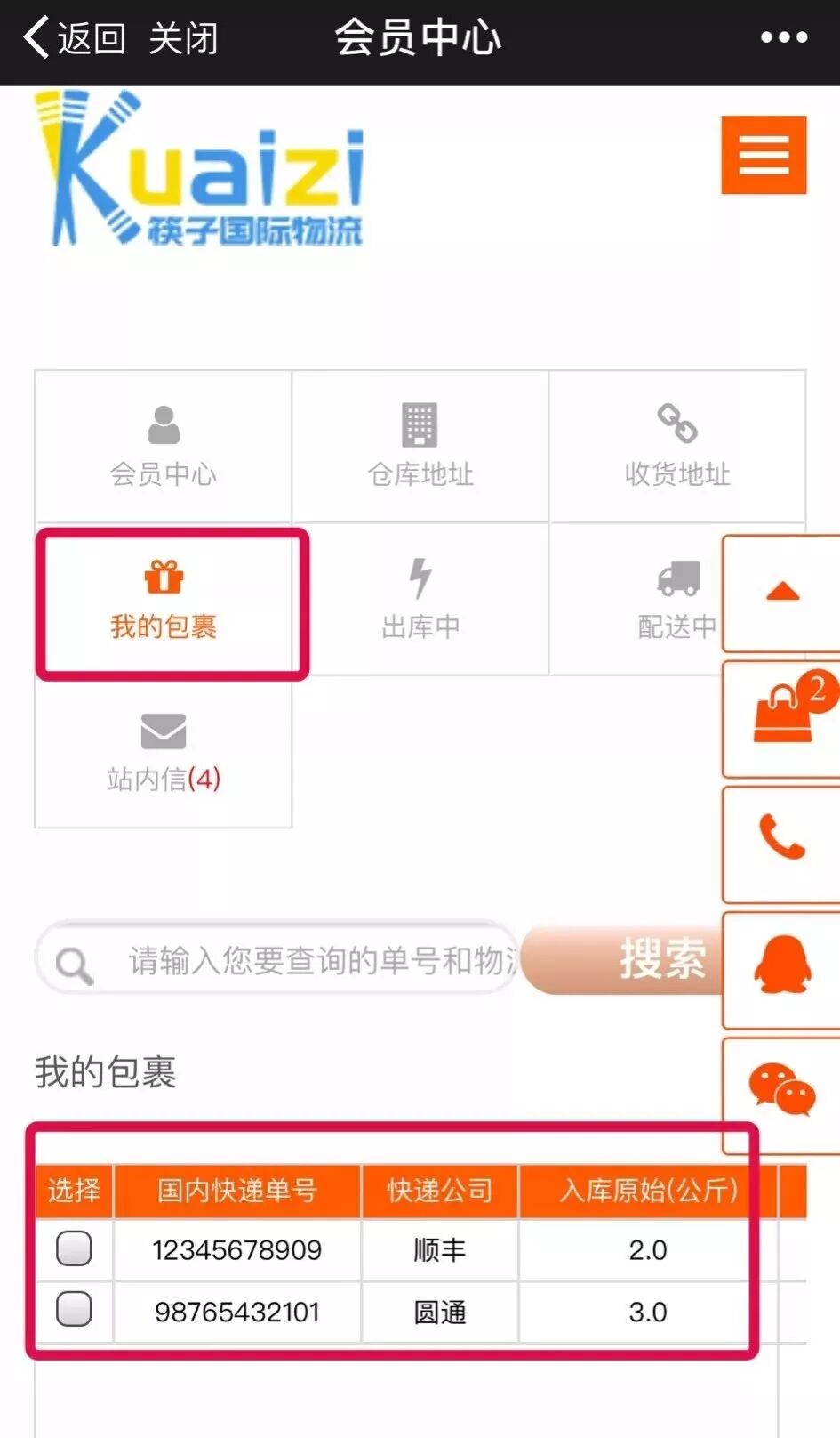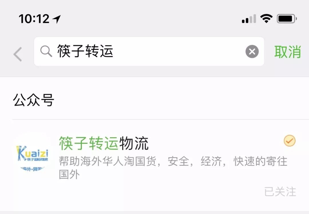在搜索栏输入筷子转运物流点击搜索