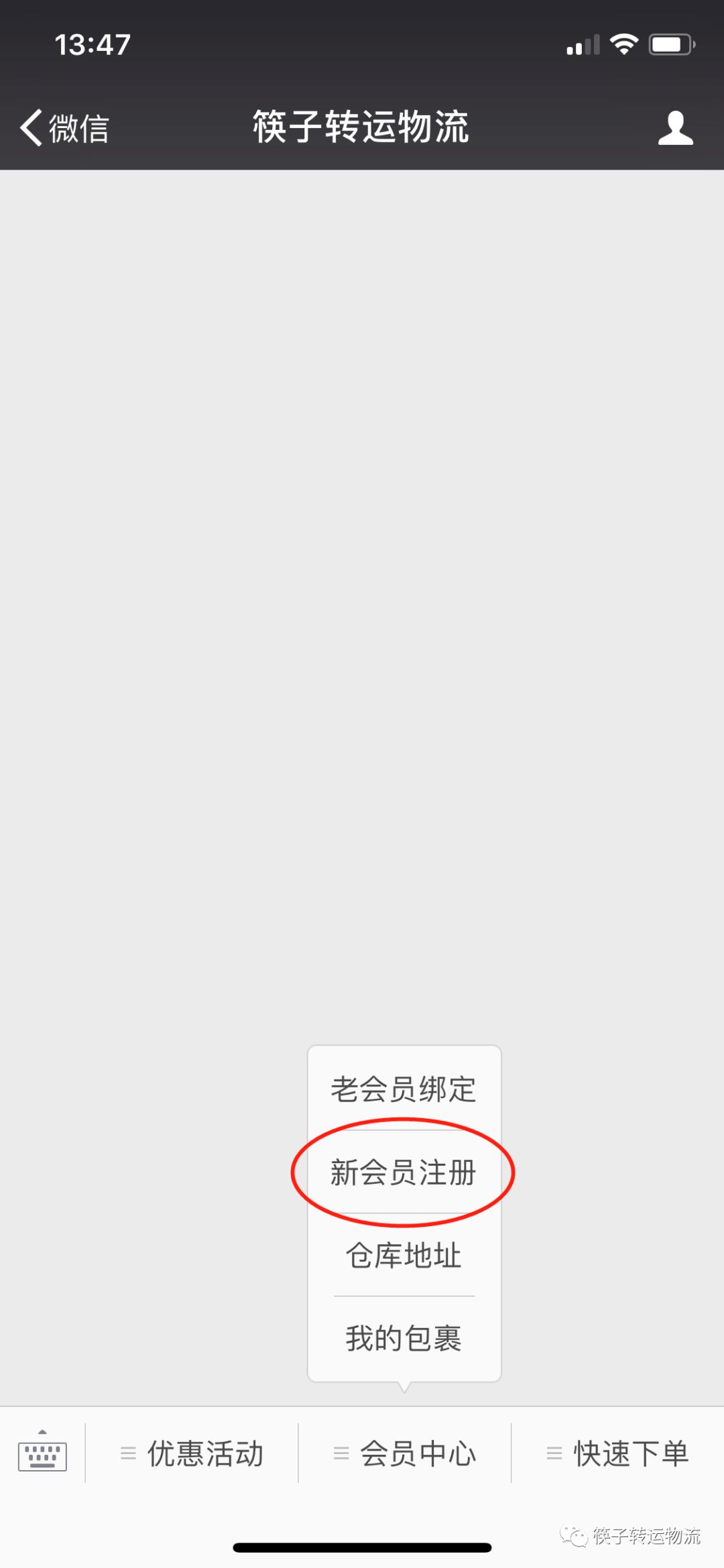 点击新会员注册一键注册