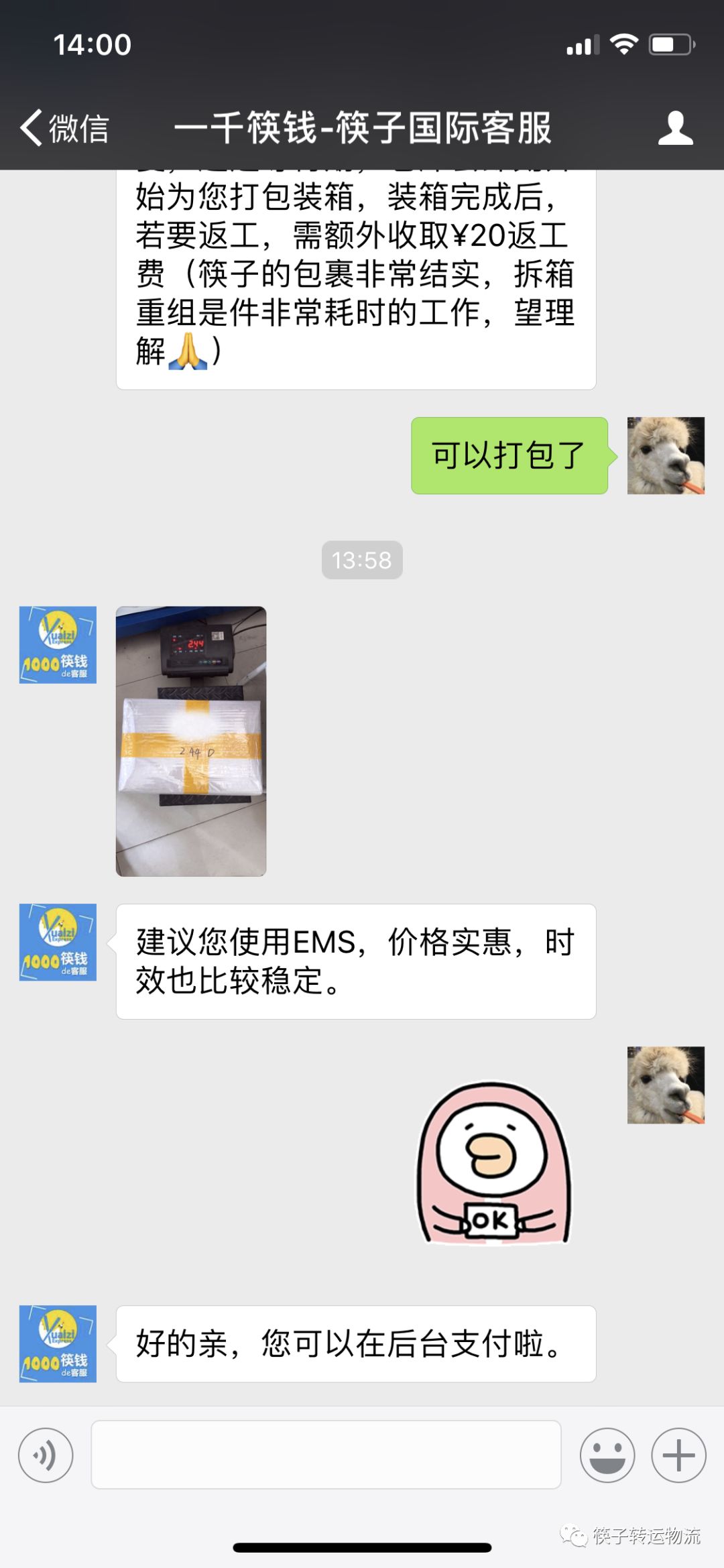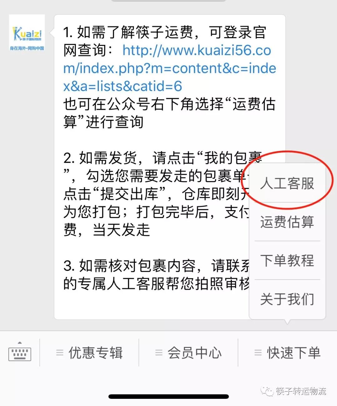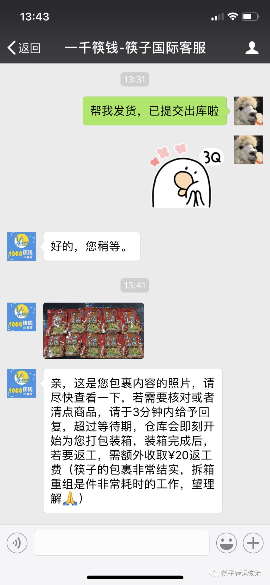 1. 微信添加客服核对包裹内容