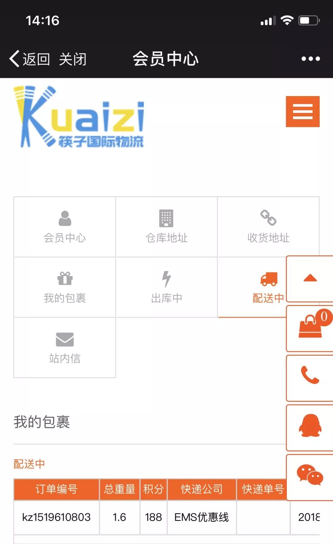 您网购的包裹到达筷子仓库后