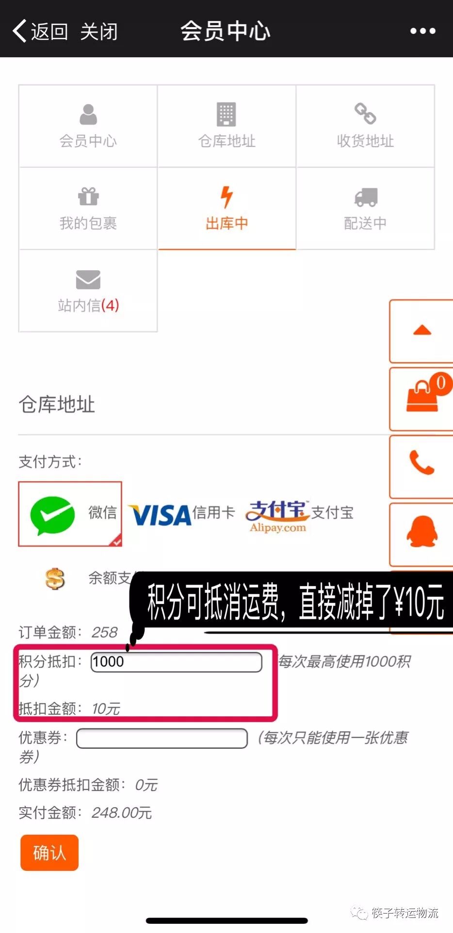“出库中”支付运费