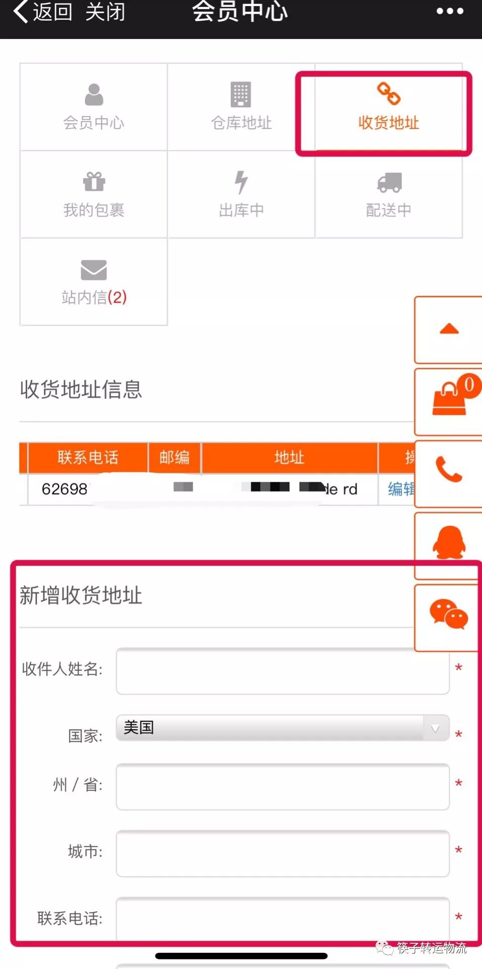 您可以在会员中心-配送中