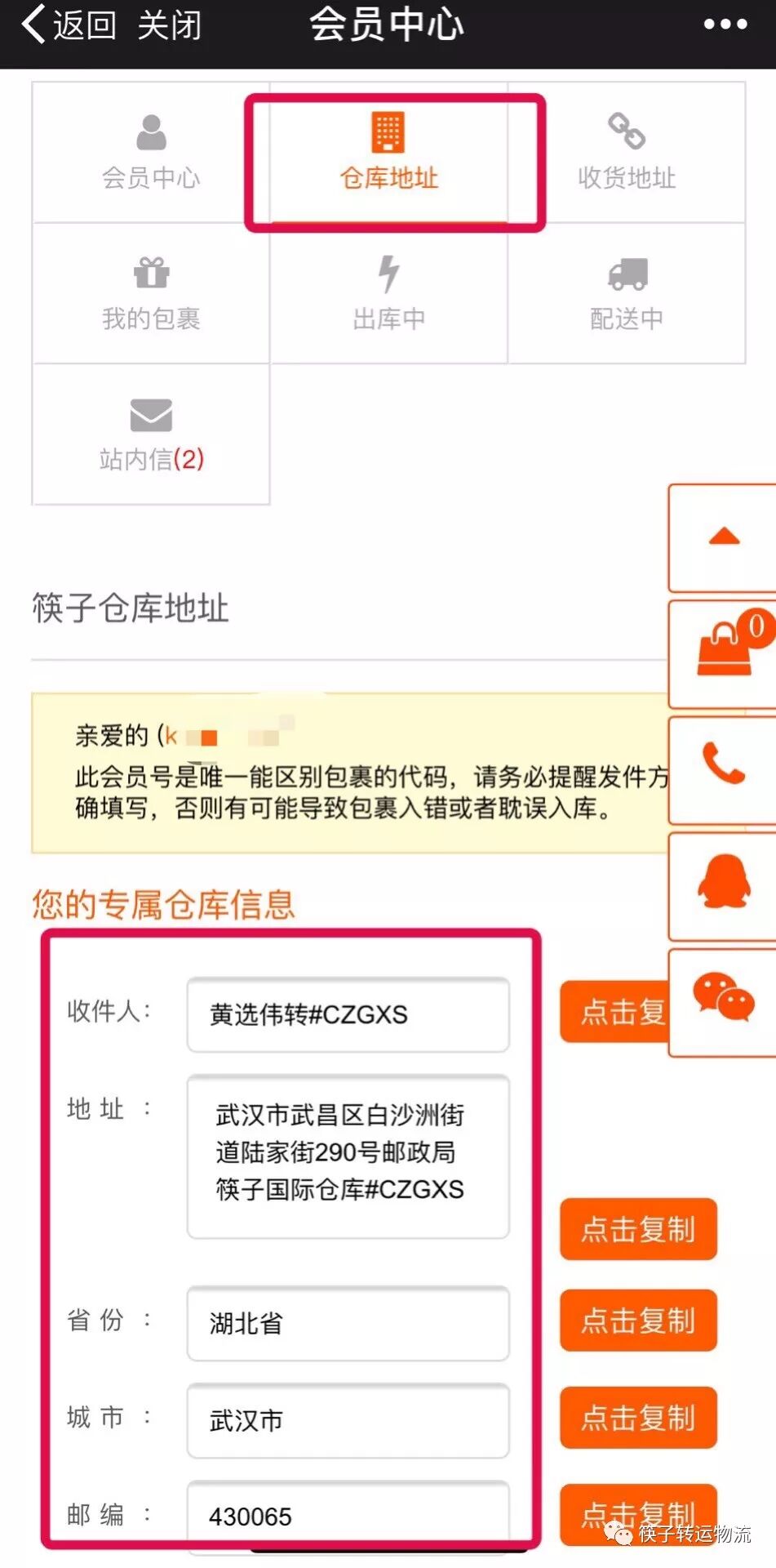 首先您需将货物寄至筷子仓库