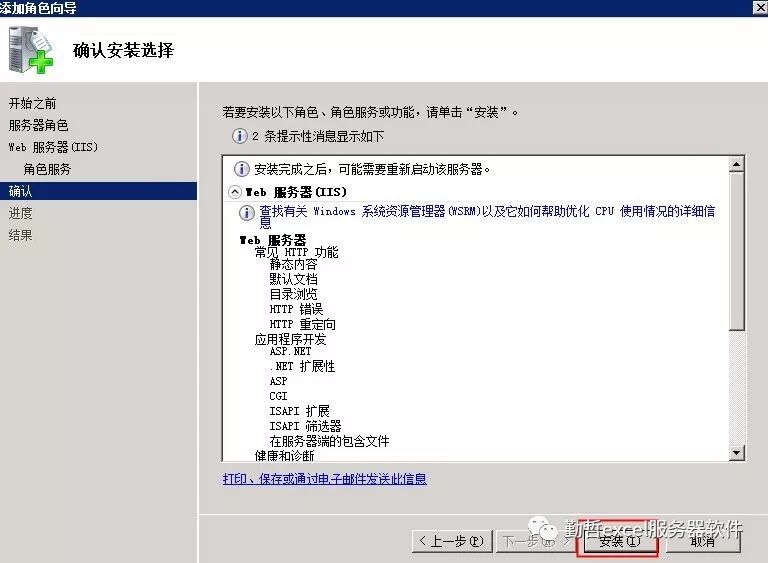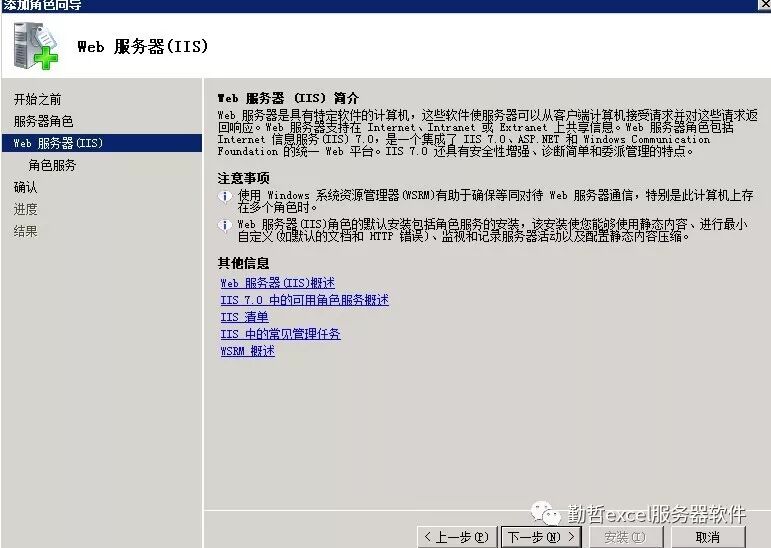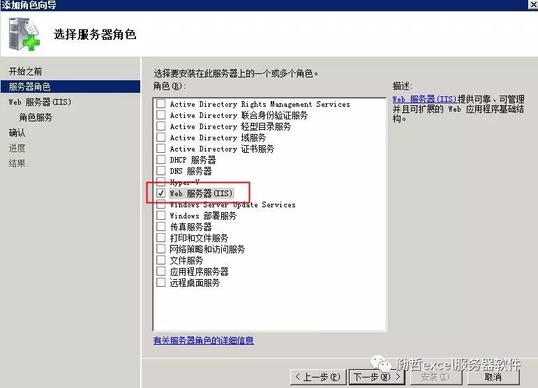 3.勾选“Web服务器(IIS)”准备安装,如下图: