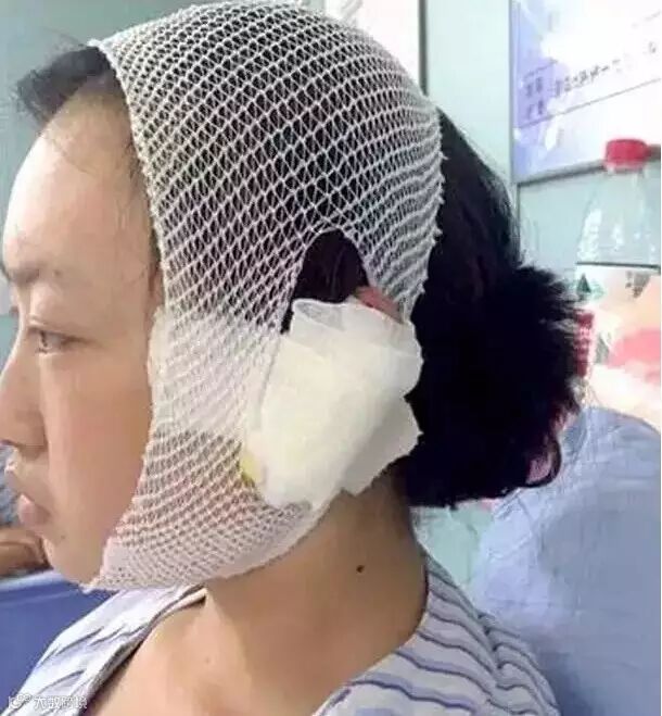 到医院后她发现手上全是血,在洗手间从镜子里看到左耳已掉了三分之一,只有一小块皮在连着,“当时我差点晕倒,根本就不敢直视。”随后大夫为她的伤口进行了缝合,但具体情况还要等3天后才能确定,如果伤口不发炎、不化脓,恢复率会高一点。