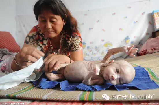 山西长治市壶关县桥上乡川底村,出生80天的郭恩泽先天无肛,四肢萎缩得只剩皮包骨头,排泄系统紊乱的他肚子微微隆起,身体到处是血青色,形状酷似“外星人”,体重从出生时的5斤变成了4斤8两,生命垂危急需手术。
