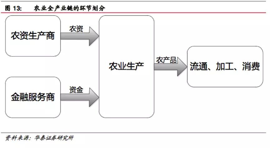 产业链包括包括农资供应、农业金融、农业生产以及农产品的流通加工消费等环节,物质流、资金流以及信息流贯穿其中。当前主要问题:只有上下两级交互、物资(产品)一级级流动、支付和物资一起一级级流动、信贷服务独立于其他行为。