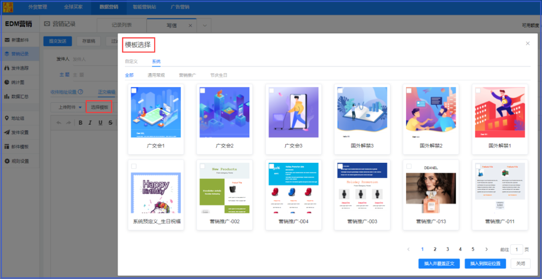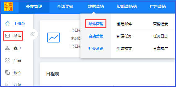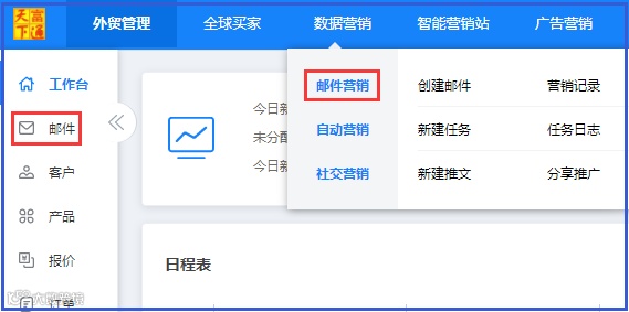 【EDM】的入口在菜单栏【数据营销】-【邮件营销】,属于营销功能,其优点是可以批量发送海量邮件快速进行客户开发,每次发件数量不受限制。受限的是账户的邮件额度。有2月份新使用云平台的用户五个月发送EDM超过700万封,这就是主动营销的缩影。