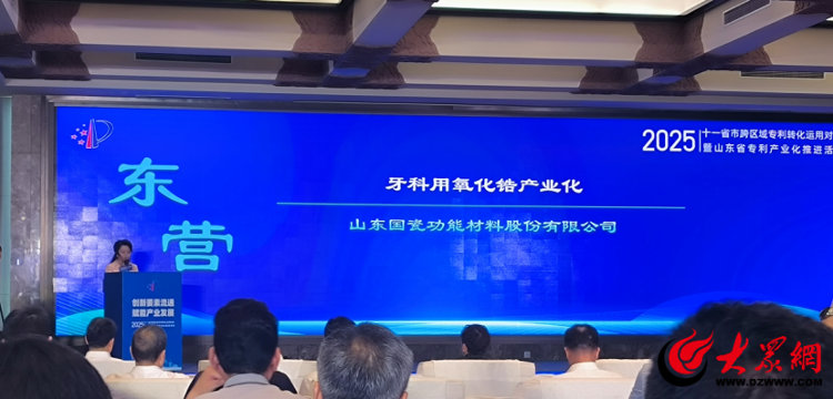 9月4日,2025年十一省市跨区域专利转化运用对接暨山东省专利产业化推进活动在济南举办,会上发布山东省专利产业化十大典型案例,东营市山东国瓷功能材料股份有限公司的“牙科用氧化锆产业化典型案例”成功入选。