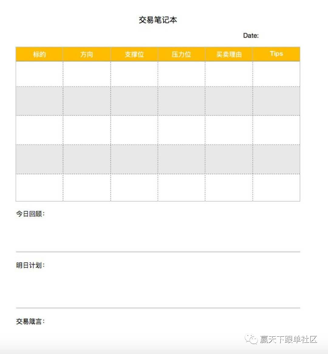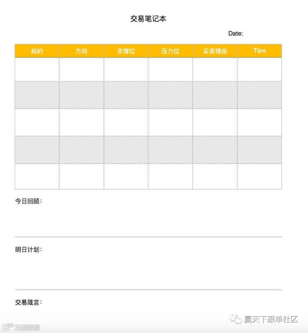 这就是我们说的盘前计划,它是交易笔记的一部分。