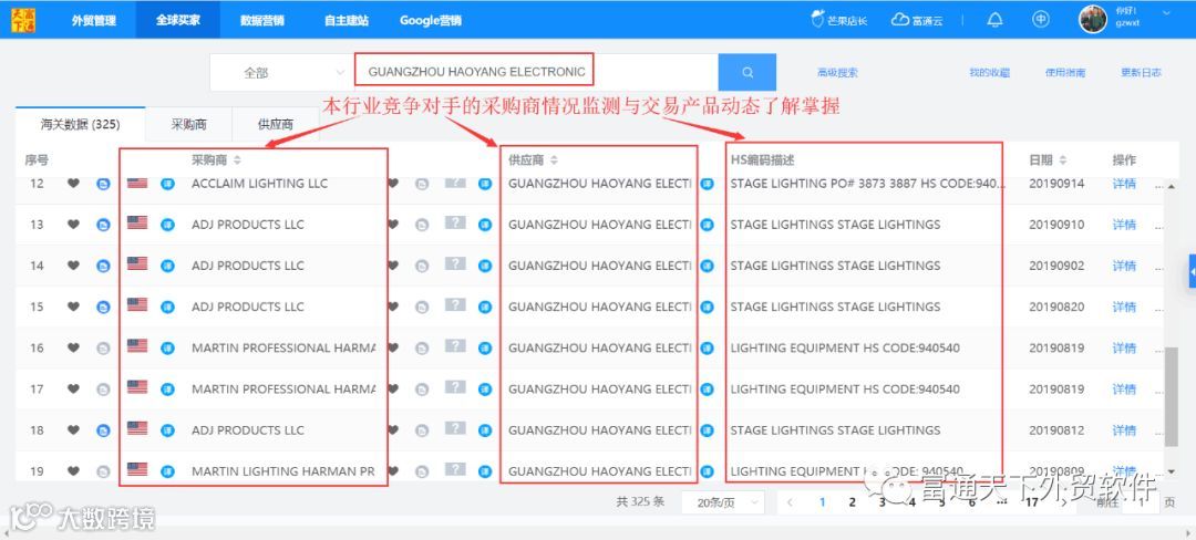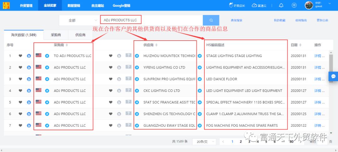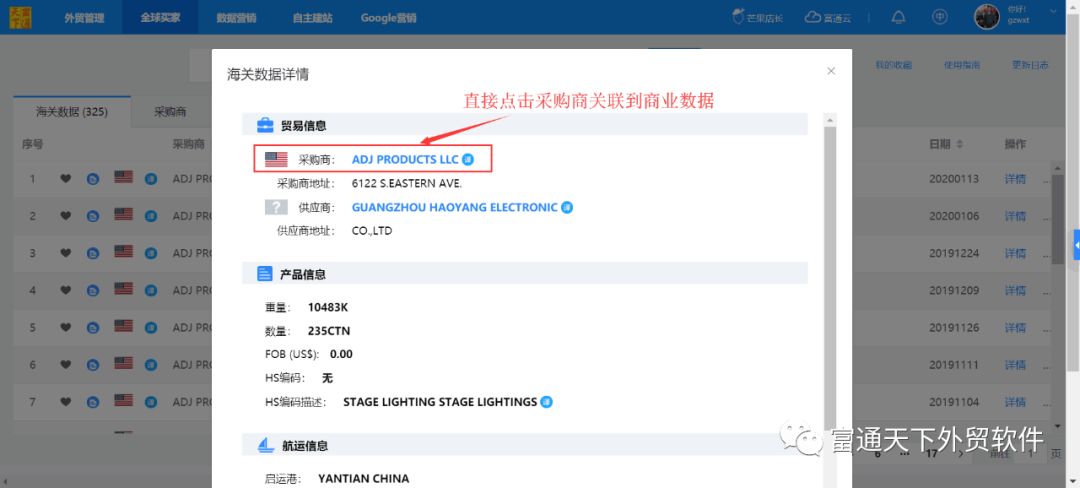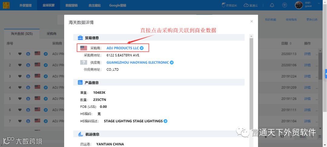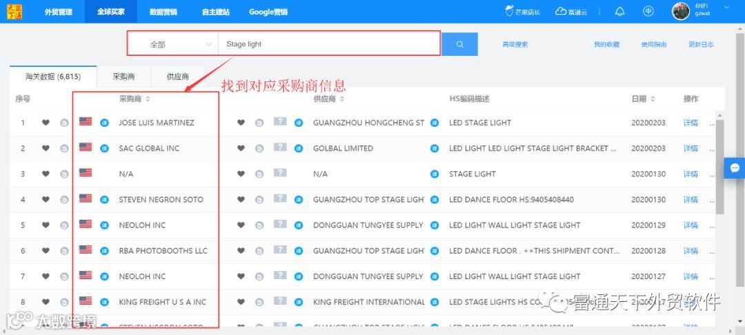1、在海关数据通过产品Keywords找到目标买家(采购商);