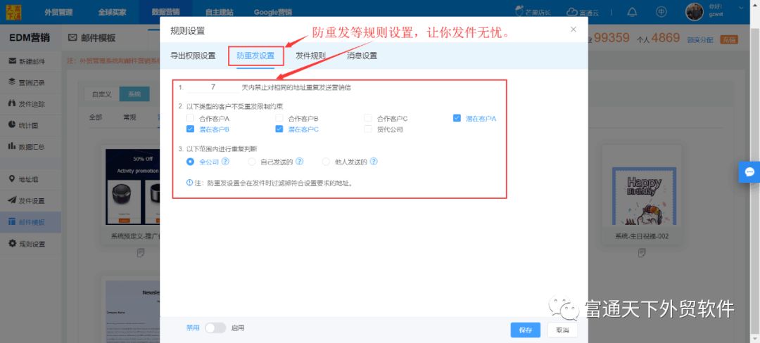 5、防重发等规则设置,让你发件无忧。