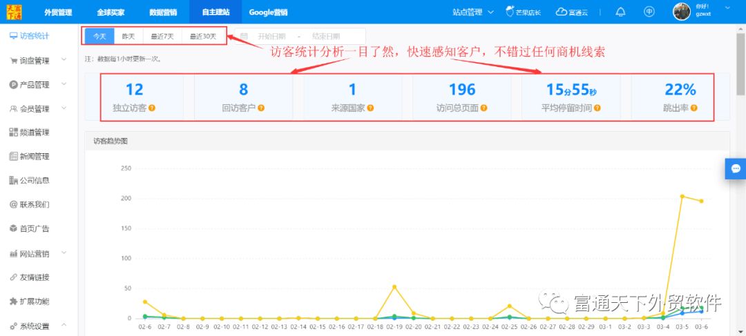 3、访客统计分析,让你快速感知客户;