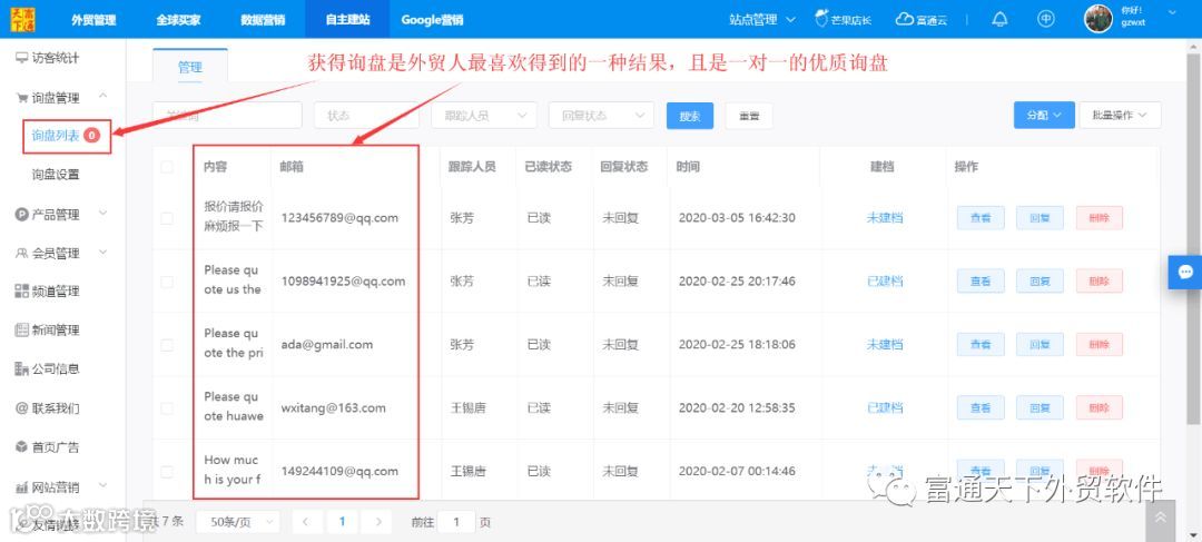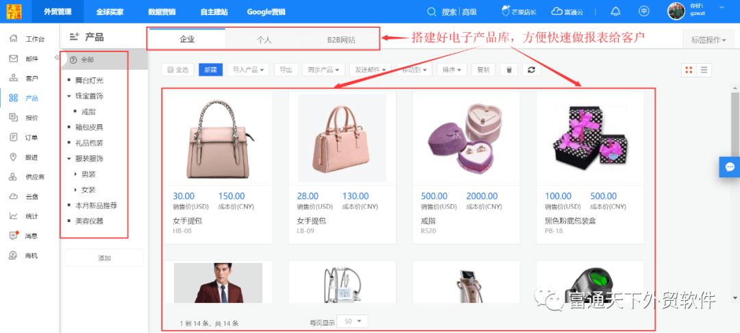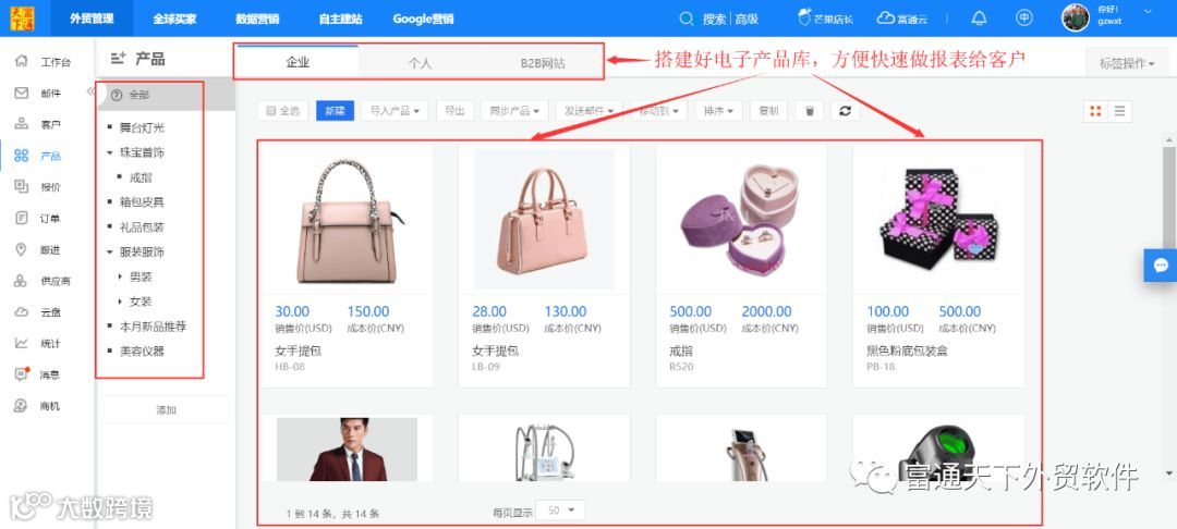 富通天下,紧跟外贸市场发展态势,专注为外贸企业解决2大关键需求:一是外部开发客户拿订单,二是内部业务运营抓管理,并为企业提供2大王牌产品:全流程外贸管理ERP + 一站式外贸营销管理云平台,全面解决外贸企业管理与营销难题。