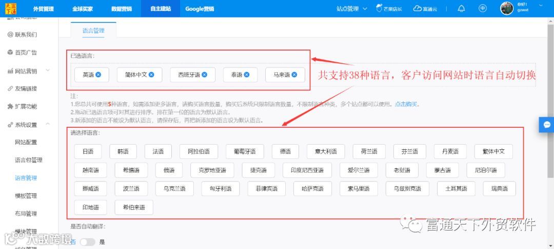 2、营销站支持多语种,根据访客的语言自动切换其母语语种;