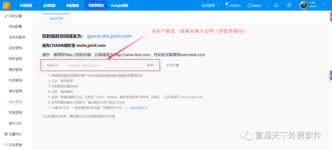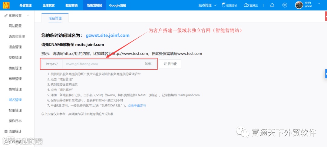 1、搭建一级域名独立官网,独立官网是外贸企业开展国际贸易的终身代表与核心;