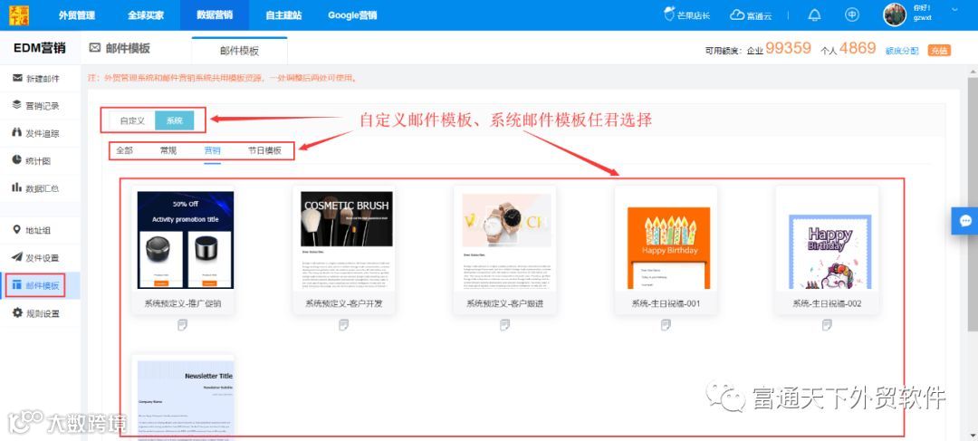 4、营销推广等专业邮件模板、自定义邮件模板任君选择;