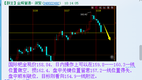 ➤钯金国际钯金160.30一线空单,现价160.20交易单可以入市参与做空,设置好止损点