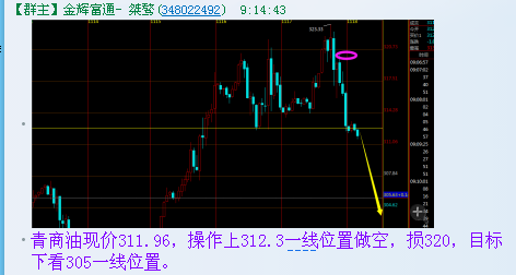 ➤青商油提示在312.3位置的空单,目前已经成交,控制好仓位,谨慎持有。