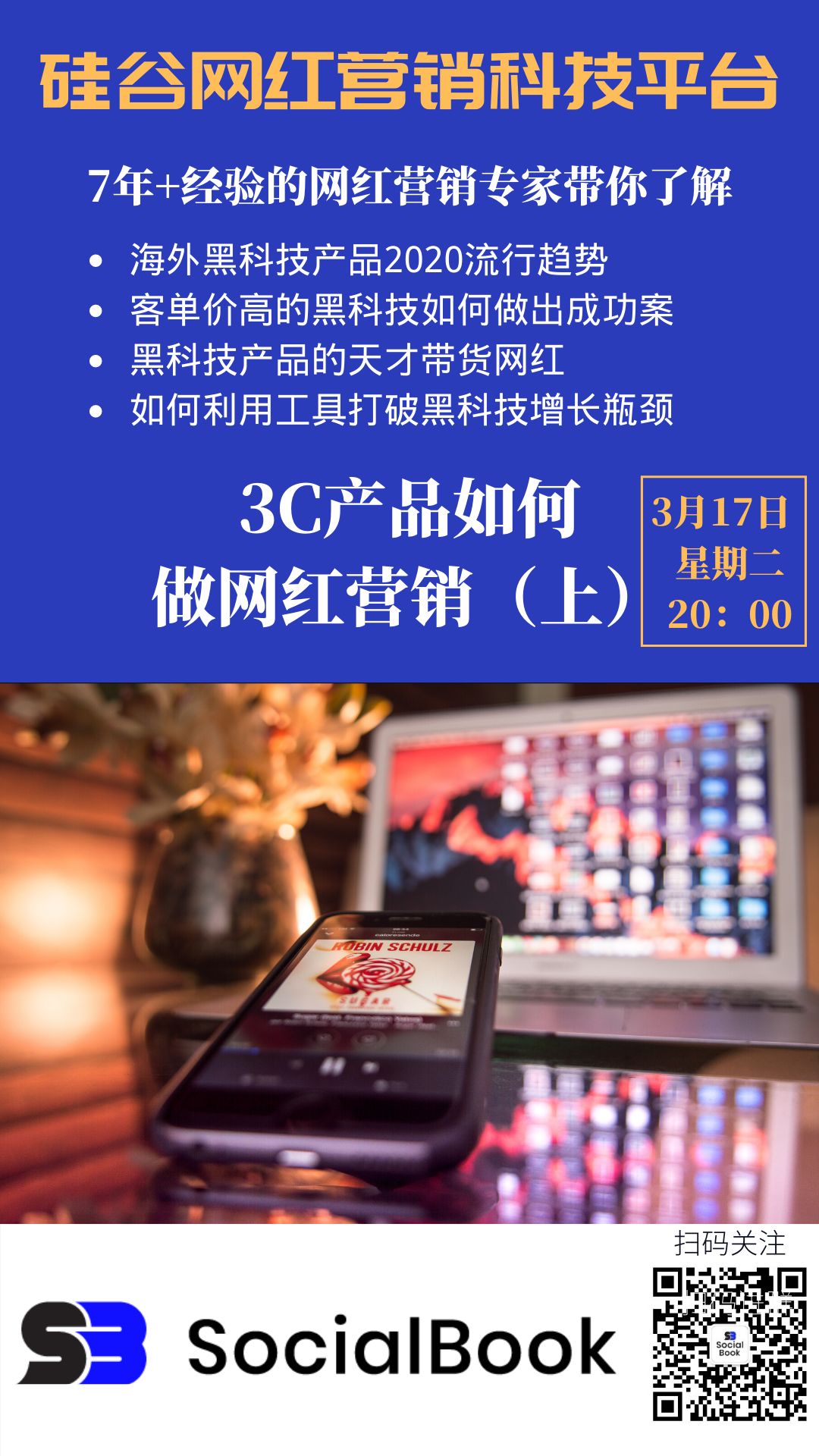 3月17日星期二晚上8点整,我们将在官网进行主题为《3C电子产品如何做网红营销?(上)》的直播,为你详细解说3C电子产品如何操作海外网红营销实际案例,不吹不黑,我们只想告诉你别人家的3C电子产品都是怎么请海外网红推到爆,卖到手软的!实际成功案例的分享,不容错过~!