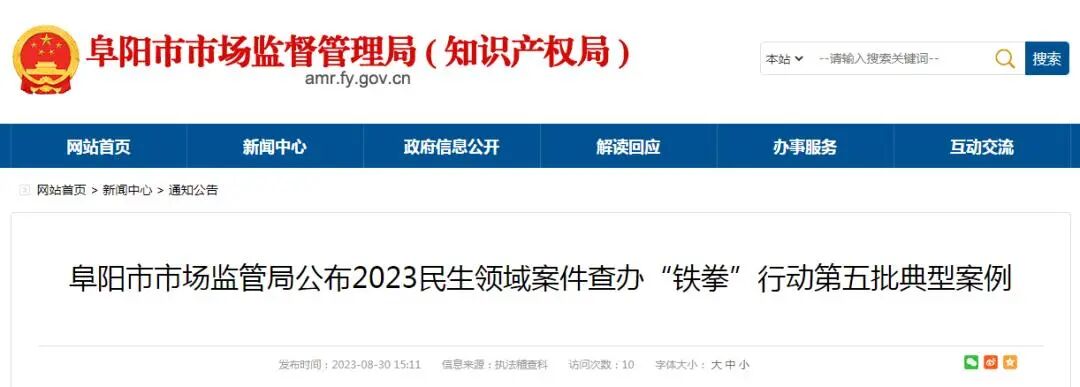 今年以来,阜阳市市场监管部门聚焦关系人民群众生命健康安全的重点商品、重点领域和重点行业,开展民生领域案件查办“铁拳”行动,查办了一批与群众密切相关的违法案件。现将第五批典型案例公布如下: