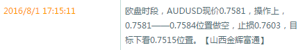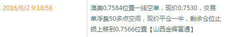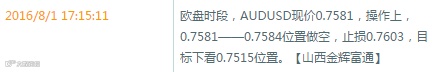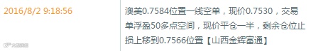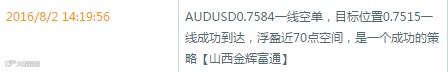 ➤昨日澳美提示0.7584一线位置空单,盘中在0.7530一线获利平仓一半,盈利54点空间,剩余仓位成功突破目标位置0.7515一线,盈利69点空间,是一个成功的策略。
