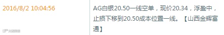 ➤昨日提示国际AG白银20.49一线位置空单,盘中在20.45一线获利平仓,是一个成功的策略。