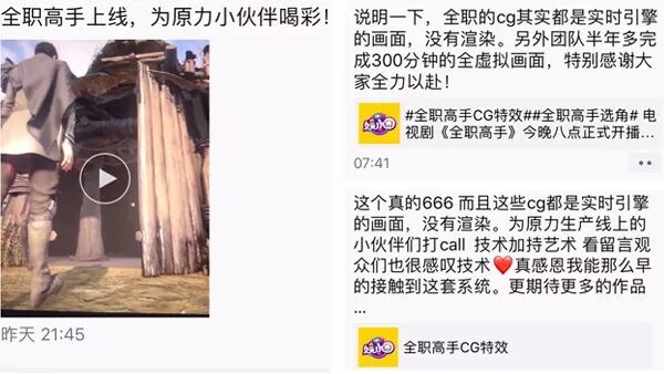 在新浪电视对该剧的微博投票中,短短几小时点赞超过23万多。“特效很燃,节奏很好,不出戏,题材新颖,演技也好追定了”、“超级棒!我会继续追剧的”、“超出预期,好看,特效很牛逼”、“按秒收费的,全职游戏部分能拍成这样,我真的太满意了”……好评如潮,大家对于CG特效的认可,原力小伙伴们表示很兴奋!