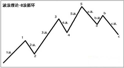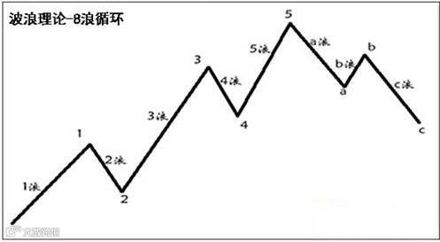 艾略特波浪理论中,任何一个完整的走势都由8个浪完成,浪数为5(1、2、3、4、5),调整浪的浪数为3(a\b\c),合起来为8。当这个8浪的循环完成之后,市场又将进入新的循环。