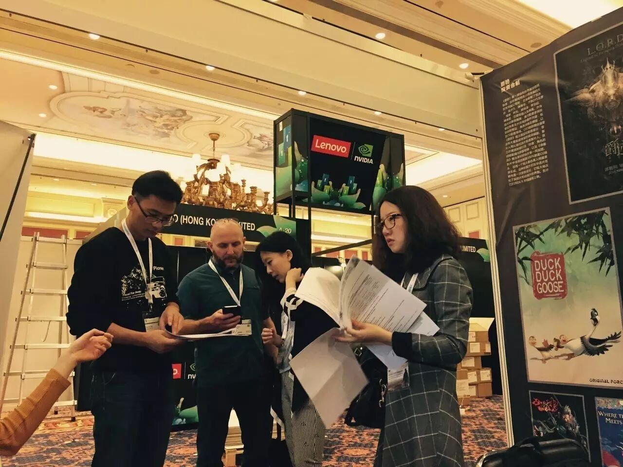 再来看原力动画展区,没有跟风VR热,而是将此行重心放在技术学习上,配合品牌展示及招纳人才。原力动画CTO Shawn带领一众TD现场参加了不少学术论坛,学习产业最新的技术相关知识;动画主管、资深项目制片及HR也在现场,为咨询观众答疑解惑,并面试选拔合适的人才。