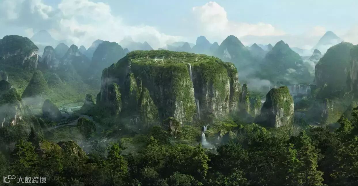影片开端,土豪金的大幅壁画,刻画着人界、妖界长久以来的混战场面,也揭露了故事发展的背景,这段动画便是由原力完成。此外,影片中的村落全景、山景全貌等大场景镜头也都由原力制作(就像下图这些)。