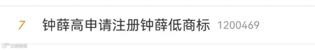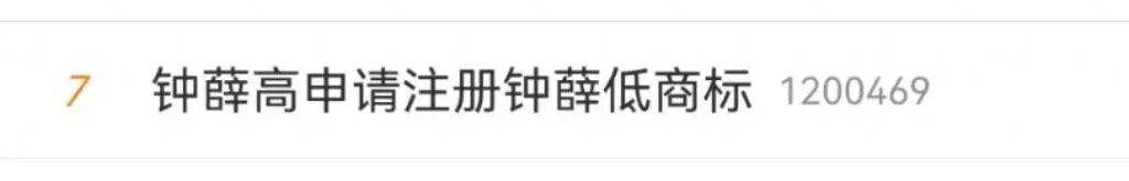 截至发稿,话题 " 钟薛高申请注册钟薛低商标 " 登上了微博热搜第七位。