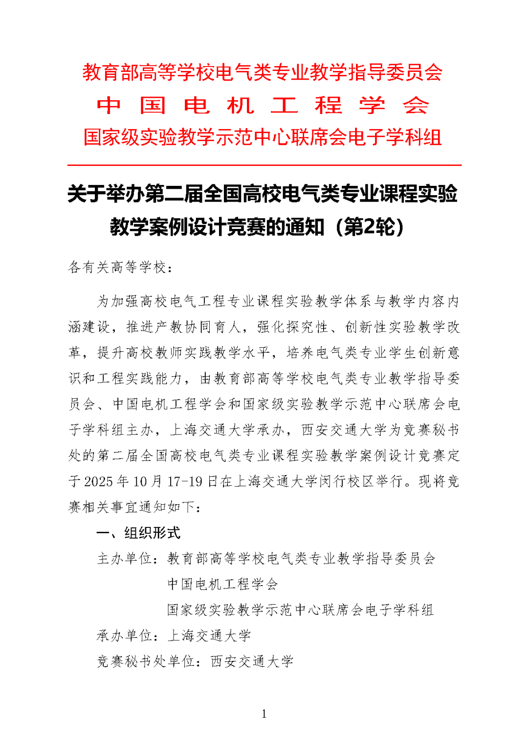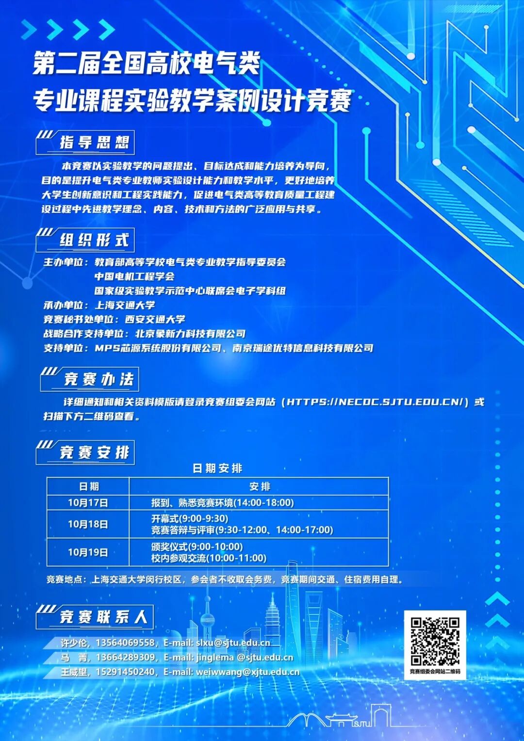 第二届全国高校电气类专业课程实验教学案例设计竞赛将于2025年10月17–19日在上海交通大学闵行校区举行。