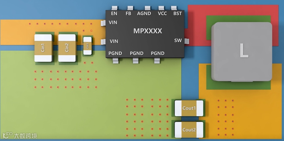 在进行PCB布线时,这两个功率回路走线要尽可能的短粗,在保证通流能力的情况下保持较小的环路面积,这样可以减少对外辐射的噪声。