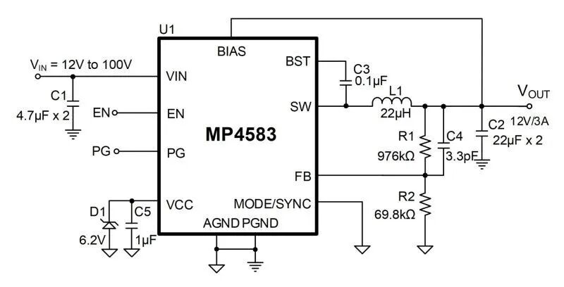 MP4583 具有 8μA 的静态电流(IQ),支持 4.5V 至 100V 的输入电压(VIN)范围,以及 0.8V 至 35V 的输出电压(VOUT)范围,适用于 2A/3A 负载的降压设计。该器件提供可选的节能模式(PSM)或强制连续导通模式(FCCM),其中强制连续导通模式可助力实现轻载条件下的小输出纹波。该器件采用 QFN - 19(3mmx5mm)的超小型封装。