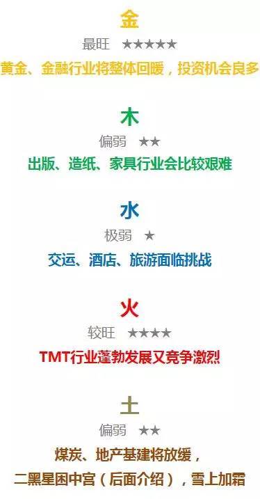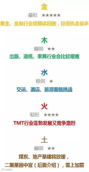 根据五行之间相克和相生的原则,他们还预测了2016年的行业走势: